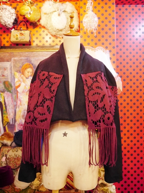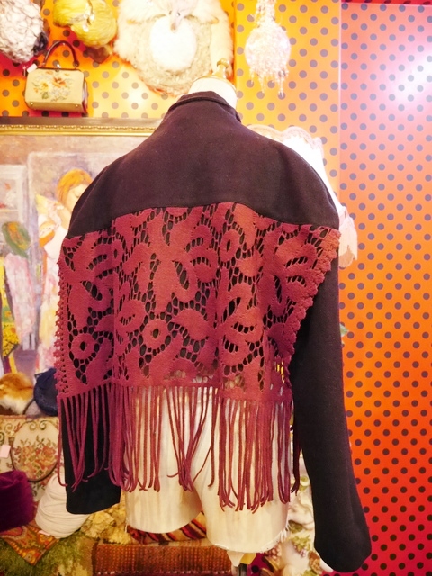 丸みがあるフォルムに花柄フリンジショールがデザインされたお洒落で個性的なフランスヴィンテージジャケット ★SALE★