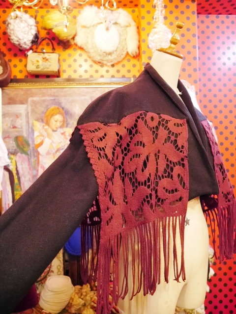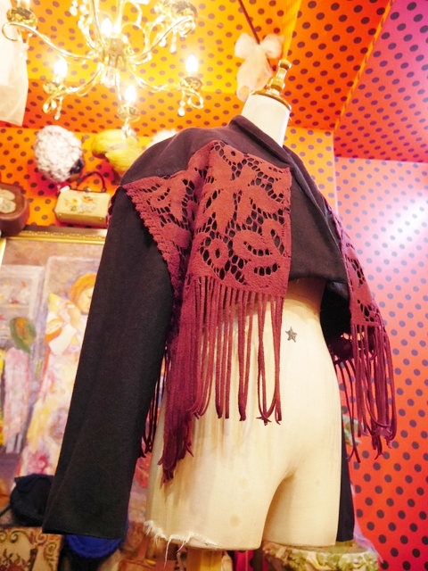 ヨーロッパ古着フリンジショール付デザインジャケット