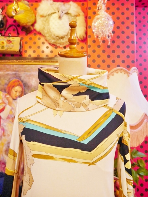 1958年創業のラグジュアリーでエレガンスなフランス製LEONARDドレス 高さのあるタートルネックに淡く上品な花柄デザインが魅力的 アクセントのポイントにウエストマークもおススメな大人ヴィンテージスタイルにプラスしたい素敵なワンピース