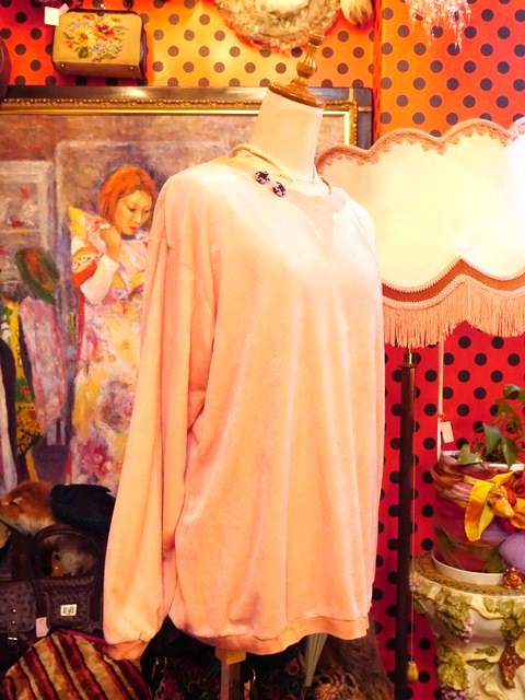 上品な女性らしさを演出できたりカジュアル〜ストリートスタイルまで幅広くスタイリングできる1970~80年代頃のヨーロピアンベロアカットソー
