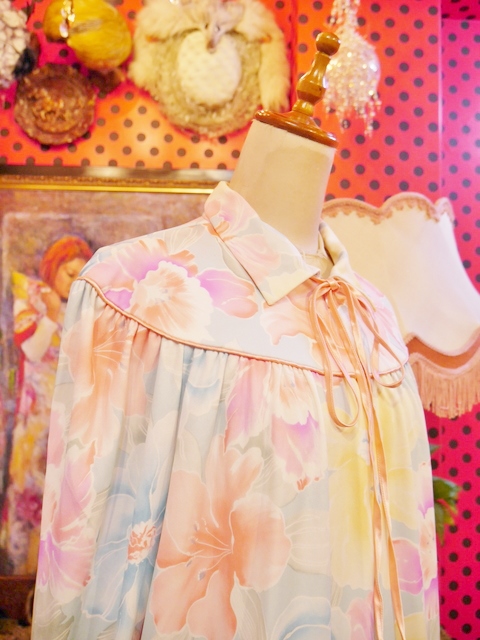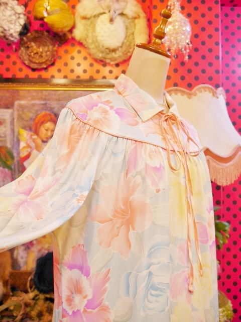 ヨーロッパ古着パステルメルヘン花柄ロングドレス