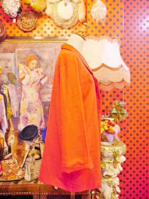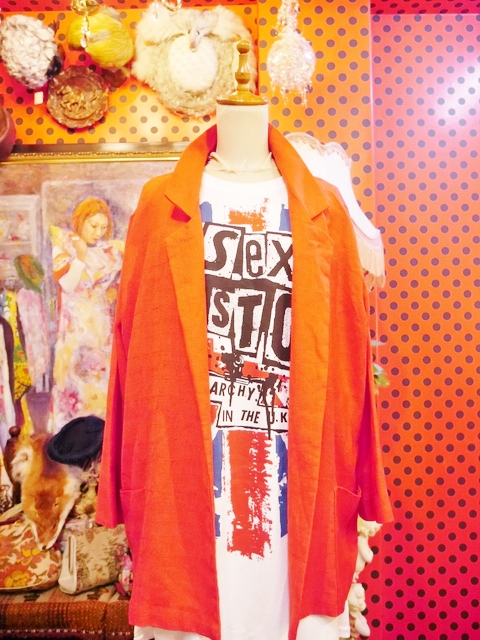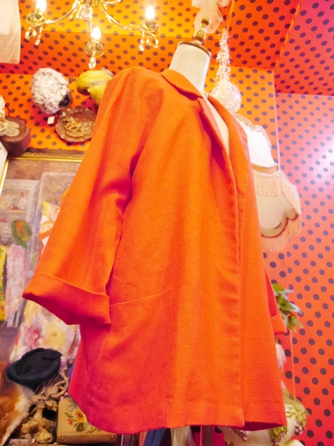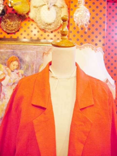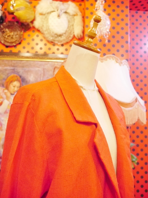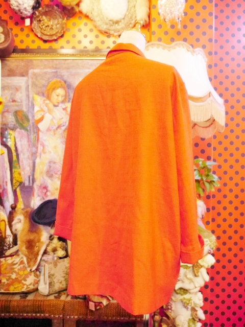インパクトたっぷりの色鮮やかな赤が魅力的!レトロ柄ブラウス、スカーフカラーブラウス、ロックTやデニムなど羽織るだけで大人っぽくもカジュアルにも着こなせるゆったりシルエットがポイントのUSA製ビビッドカラージャケット