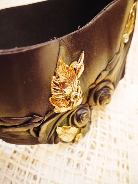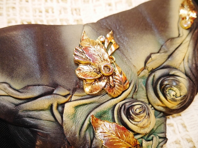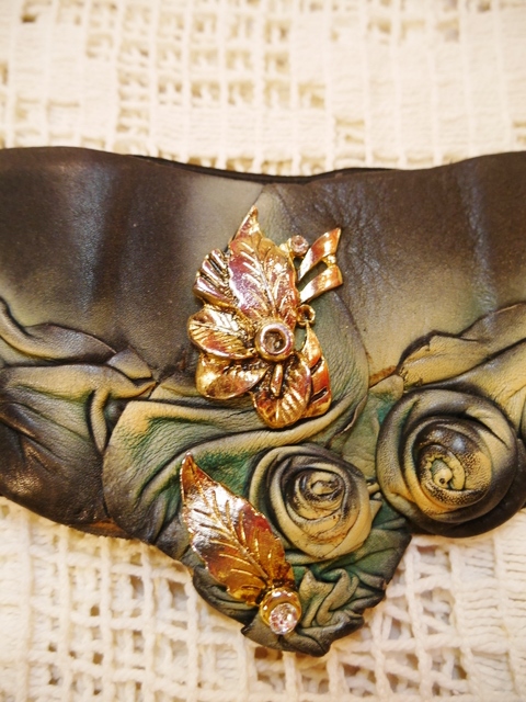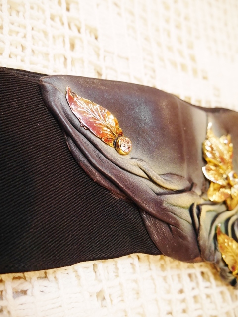 黒×グリーンの本革に立体的なお花やゴールドの葉っぱデザインがお洒落で個性的なアンティーク感漂うヨーロピアンラバーベルト オールシーズン活躍してくれるお洒落アイテム!