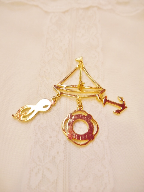 帽子やかごバッグ、ブラウスやジャケットなどにプラスするだけでお洒落度UPするパリで見つけたヨット柄マリンブローチ ユラユラ揺れるイカリマークや浮輪、ロープがお洒落ポイント!