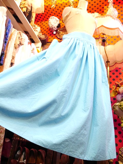 ふんわり広がるデザインと鮮やかな水色パステルカラーが可愛いドイツ製マリンスカート 大きなポケットがポイント ★SALE★