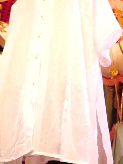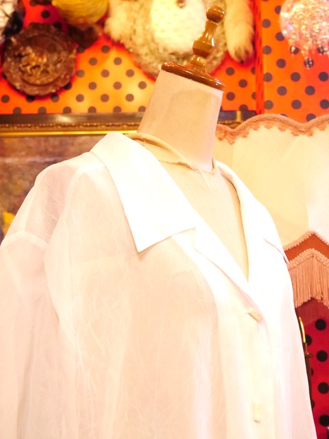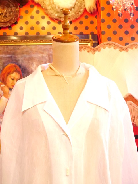 透け感があるトランスペアレント素材でレイヤードスタイルが楽しめれるセクシーでモードなヨーロピアンオーバーサイズブラウス レトロボタンや袖先のカットデザインがお洒ポイント!