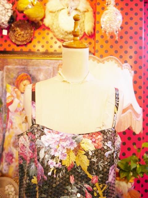 ヨーロッパ古着旧西ドイツ製スパンコール花柄ドレス