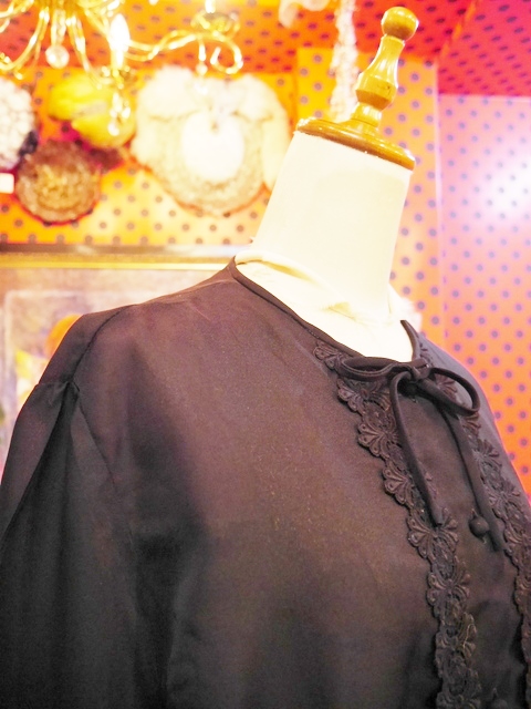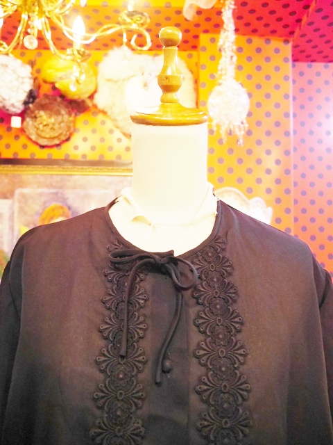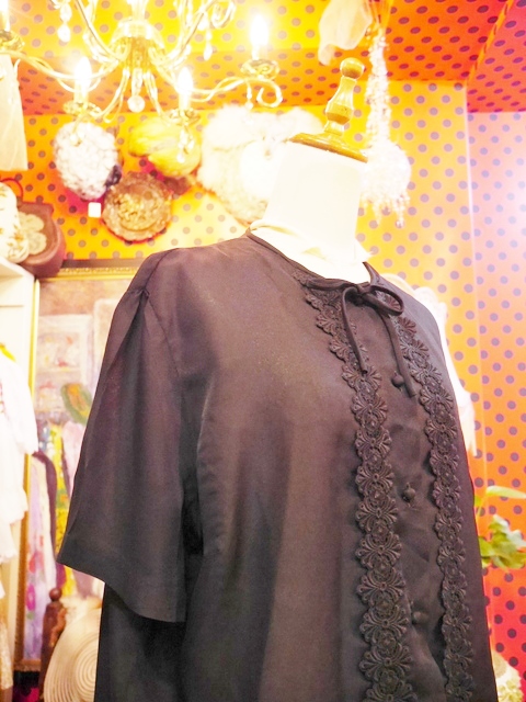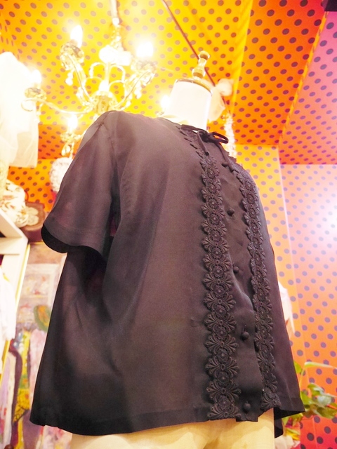 大人エレガンスな透け感にレトロモダンな花柄テープデザインが魅力的な1950~60年代頃のヨーロピアンヴィンテージブラウス リボン付きがお洒落ポイント!