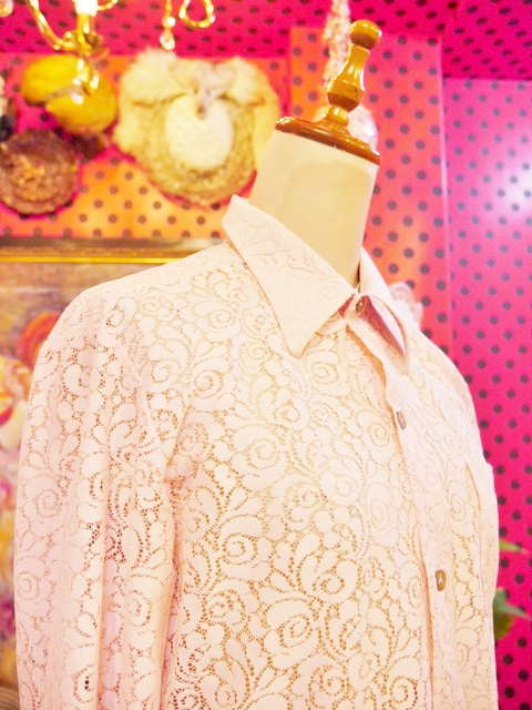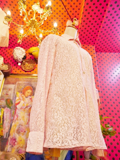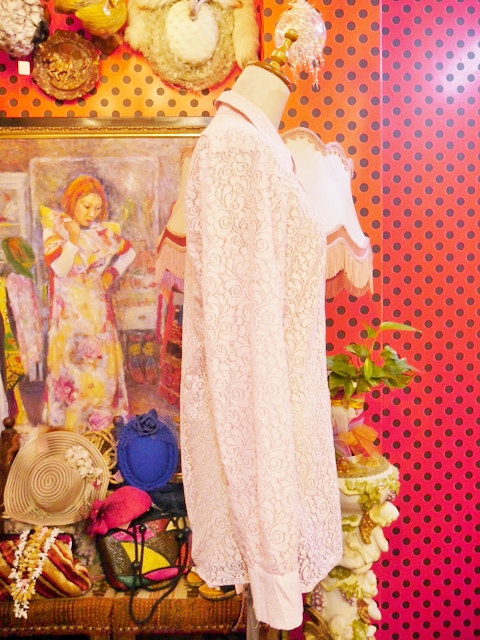 エレガンスにもマニッシュな印象にもなるマーブル模様のような花柄総レースデザインが魅力的な1960~70年代頃のヨーロピアンヴィンテージブラウス