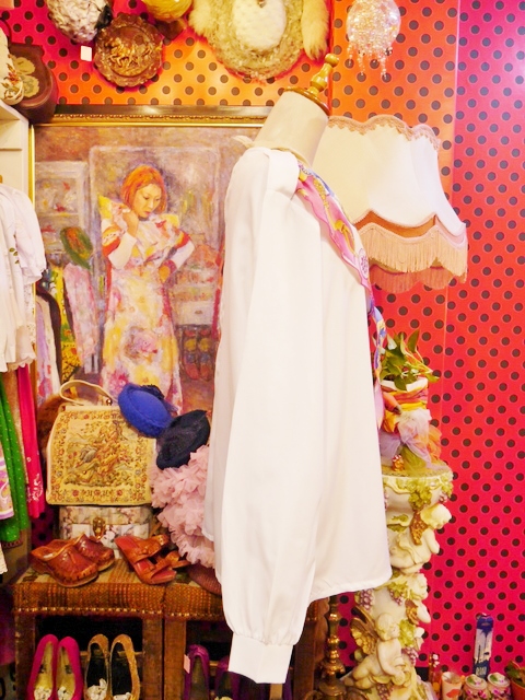 ヨーロッパ古着70sフランス製レトロポップ水玉シャツ