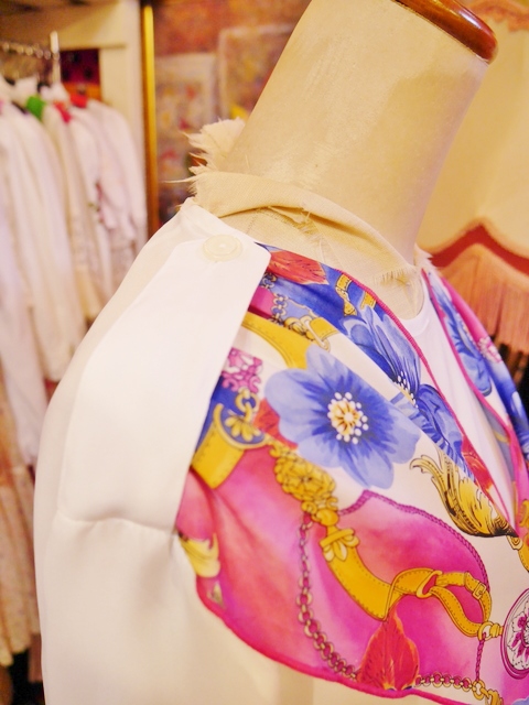 ヨーロッパ古着花柄スカーフ付レトロエレガンスブラウス