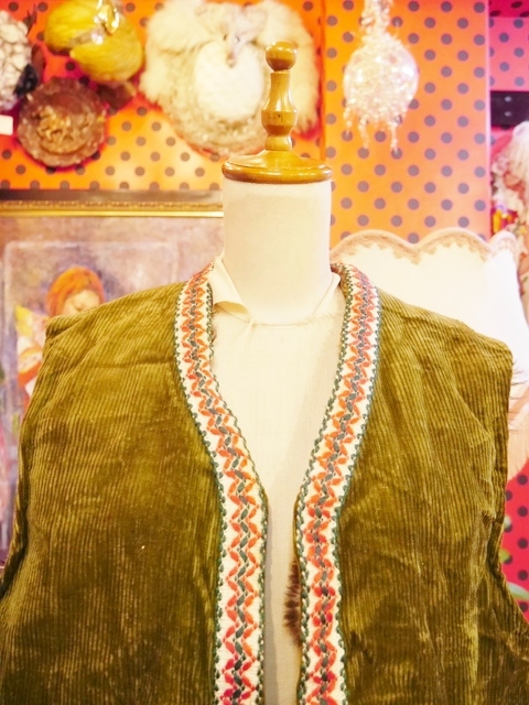 ヨーロッパ古着70sヒッピーコーデュロイムートンベスト