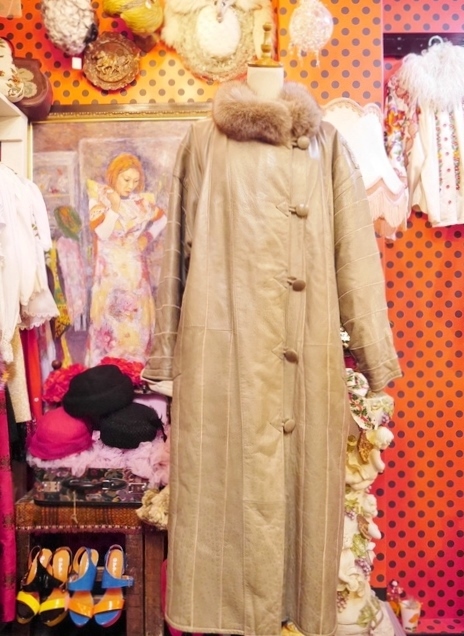ヨーロッパ古着レトロゴージャス本革ファーロングコート