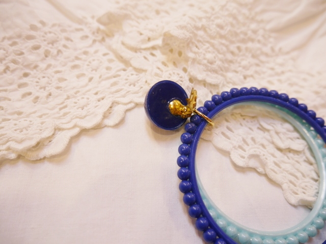 ゆらゆら揺れるレトロポップな2色のフープデザインが可愛らしい1970年代頃のヴィンテージイヤリング スタイリングを何倍にも輝かせてくれるベルギーで見つけたお洒落アクセサリー