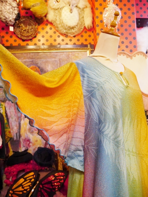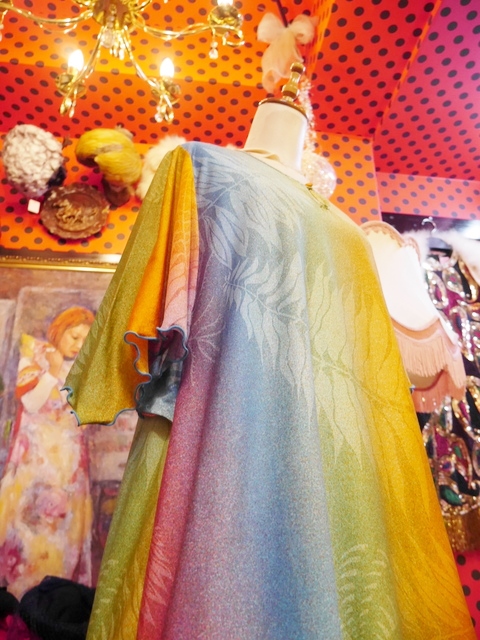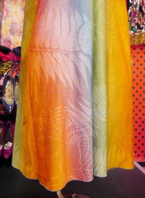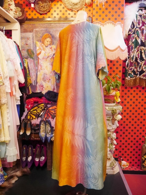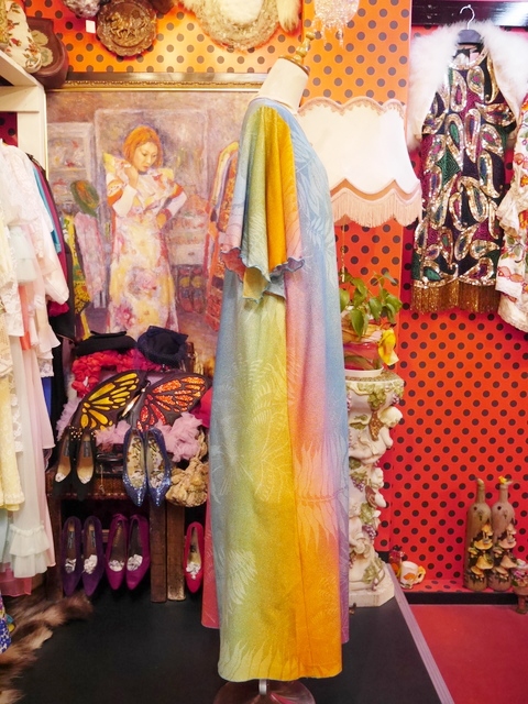 カラフルなグラデーションカラーにエレガンスな袖のドレープ感が魅力的な1970年代頃のフランス製ヴィンテージロングドレス アクセントにウエストマークもおススメ! ★SALE★