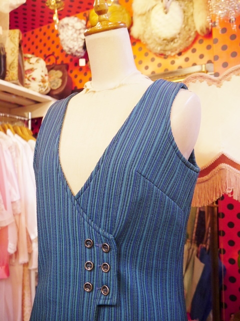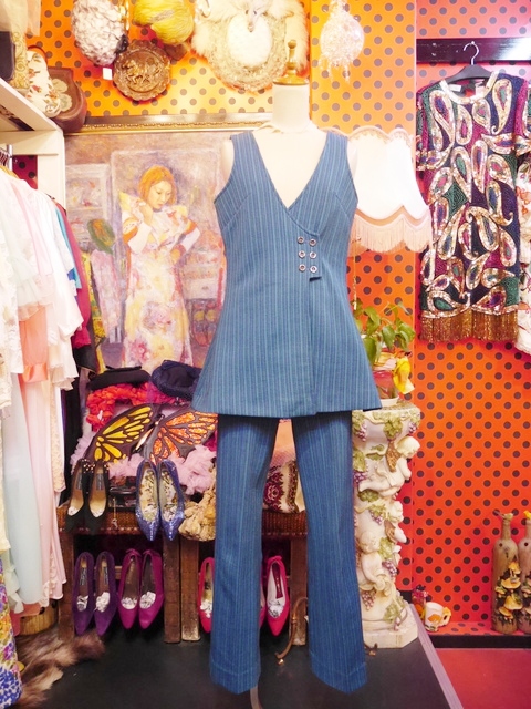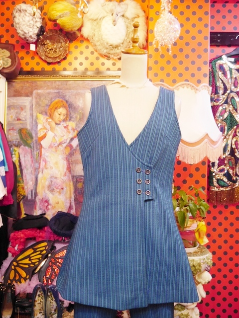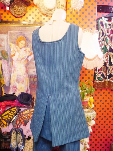 着丈が長めのノースリーブAライントップス×飾りポケットが可愛いレトロパンツの1960~70年代ヴィンテージセットアップ 別々で着用してもカッコいいスタイリングの幅が広がるお洒落アイテム!