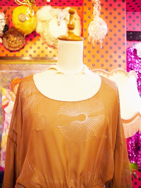セクシーでシアーなブラウンにエレガンスなラメ模様×ドレープ感があるロング袖丈が魅力的なヨーロピアンシフォンドレス パーティーやイベント衣装におススメなレイヤードスタイルが楽しくなるお洒落アイテム!