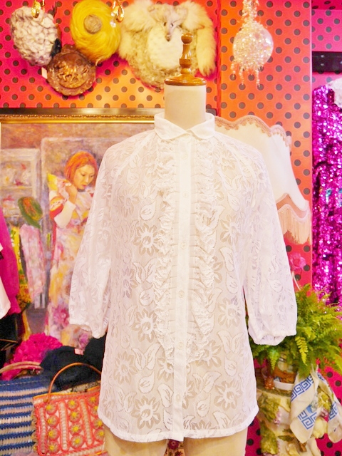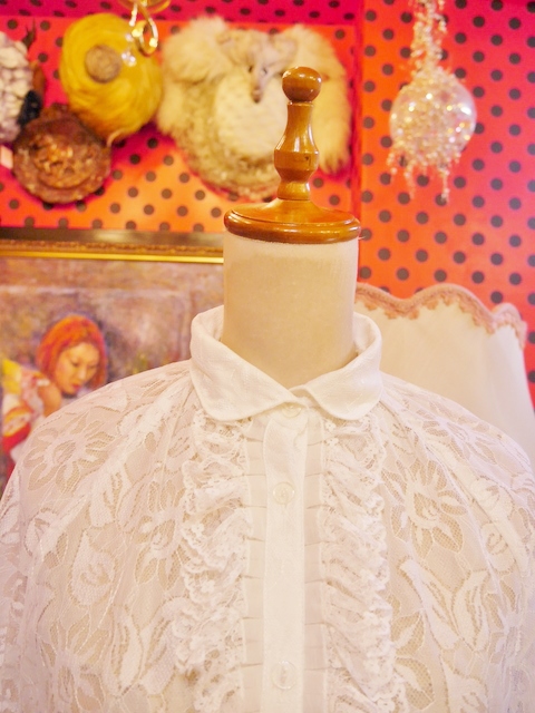 ヨーロッパ古着70sヴィンテージ花柄レースブラウス