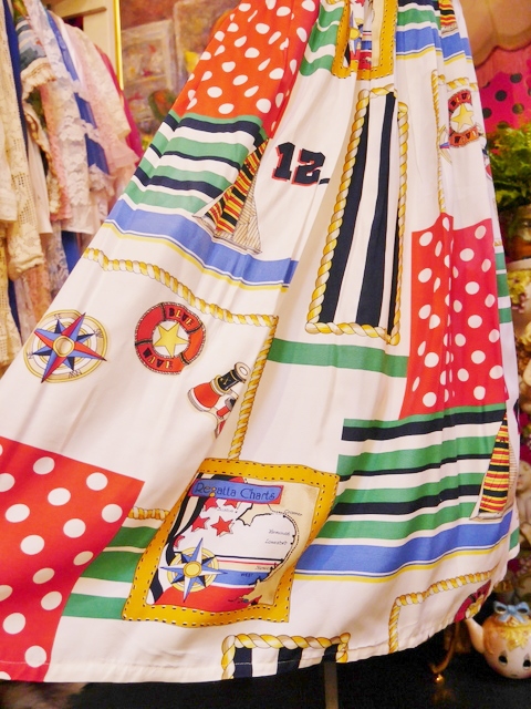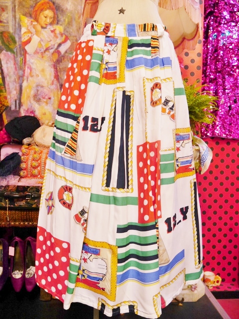 ドットやボーダー、ヨットにコンパスなどカラフルポップなマリン柄が魅力的な1970~80年代頃のヨーロピアンスカート