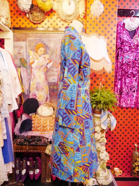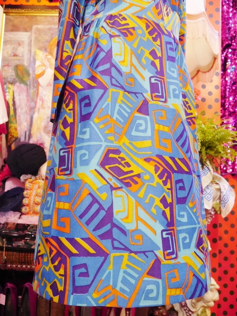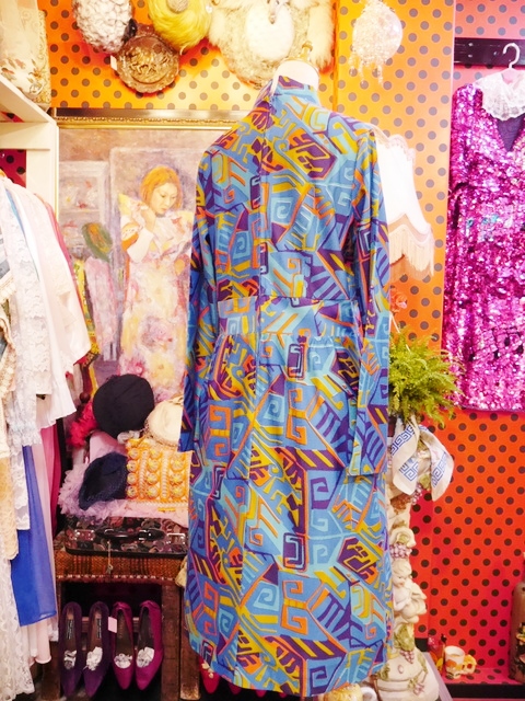 ヨーロッパ古着70s幾何学模様レトロワンピース