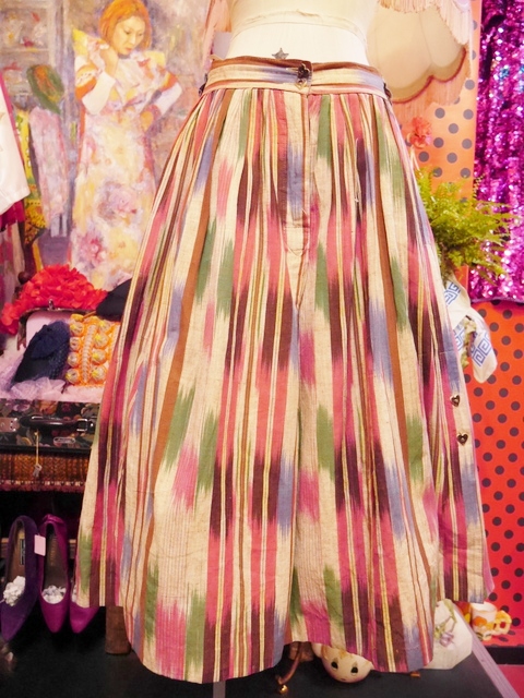 アンティーク感漂うキリムのような模様にハートのボタンが可愛らしい1970年代頃のヨーロピアンヴィンテージチロルスカート オールシーズン活躍してくれるお洒落アイテム!★SALE★