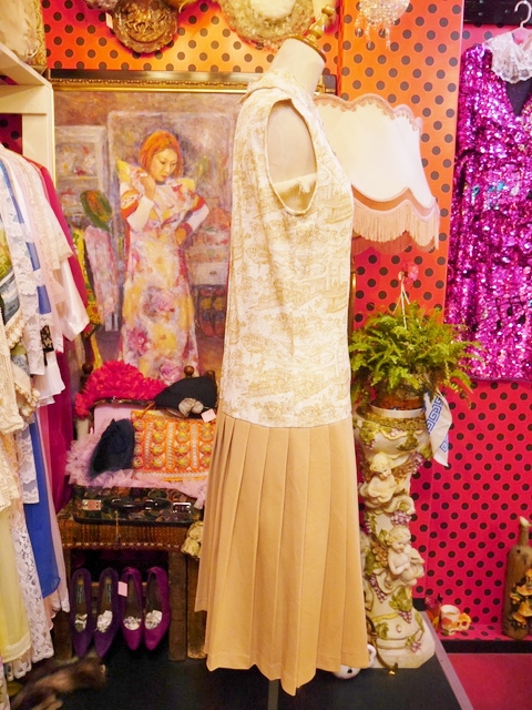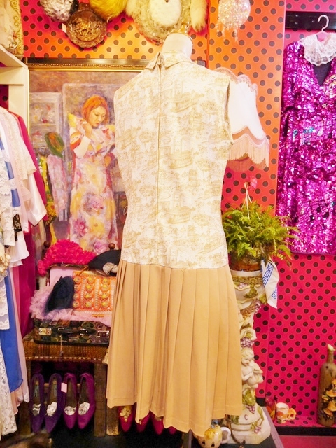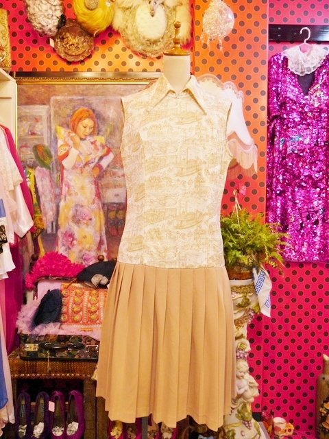 ヨーロッパ古着70sレトロガーリープリーツワンピース