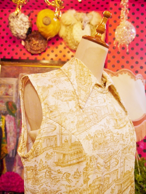 ヨーロッパ古着70sフランス製レトロポップ水玉シャツ
