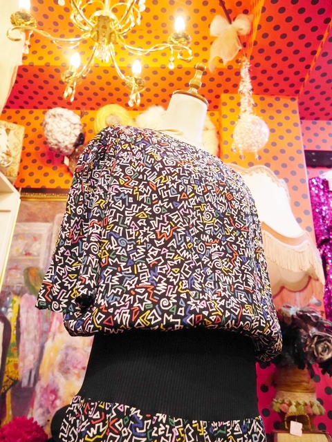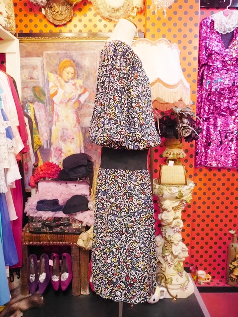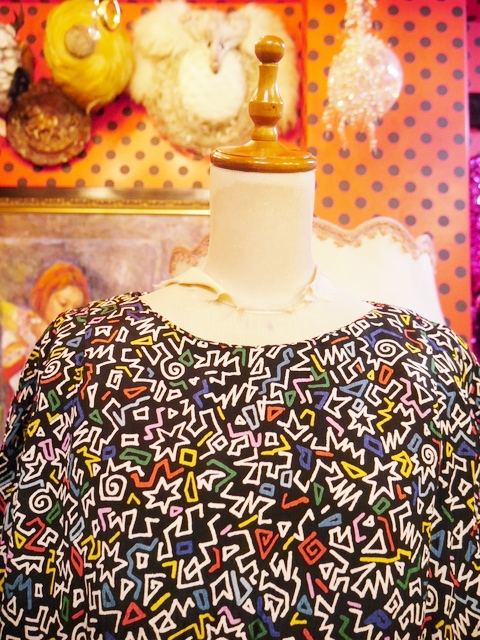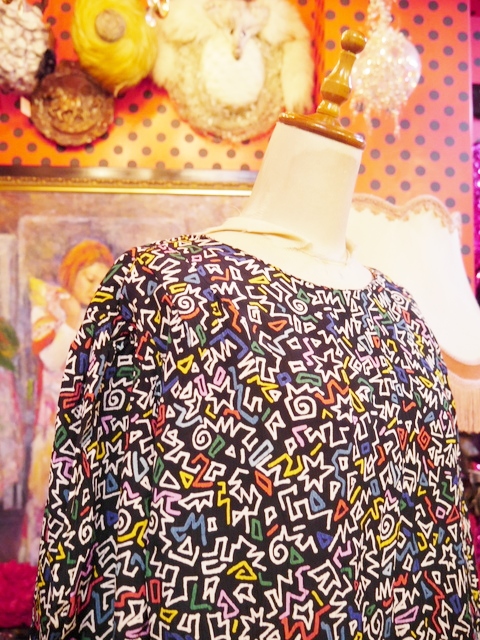 ヨーロッパ古着80sカラフルレトロポップ柄ワンピース